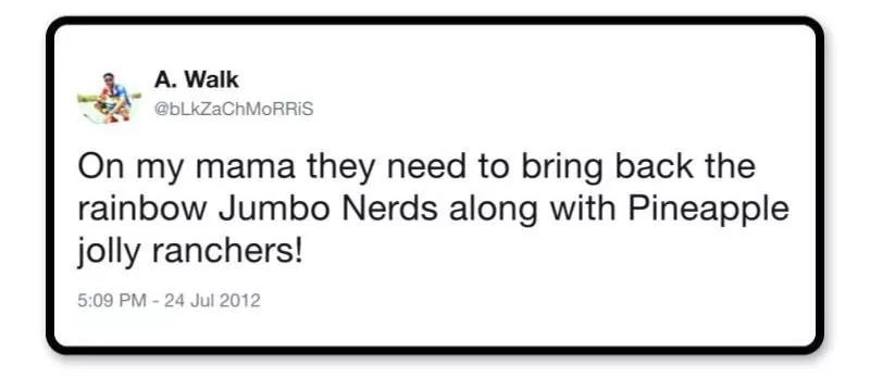 Bigger than regular Nerds and available in a wider range of flavors, Jumbo Nerds should have been a big success, but for some reason failed to hit the spot with more consumers. “The bigger, the better,” might often apply, but not in this case.