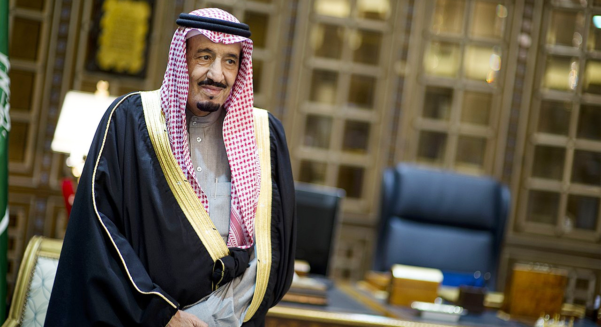 King Salman: Life-Size Portrait on Gold-Toned Material – $9,500